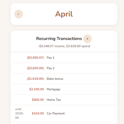 The Budget App is a personal finance tracking tool designed to make recurring expenses and income easier to understand and manage. Instead of manually entering every transaction, the system models recurring payments such as rent, subscriptions, and paychecks and automatically generates the appropriate entries each month.
